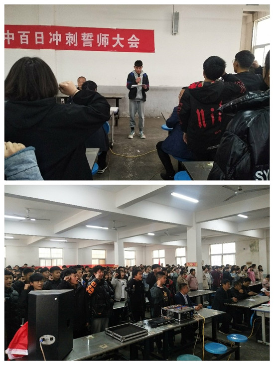 3月16日上午,雙樓一中九年級召開中考百日沖刺誓師大會。九年級全體師生參加大會,該校業(yè)務(wù)副校長張晉峰主持會議。鄲城縣教體局基礎(chǔ)教研室副主任邢偉、雙樓鄉(xiāng)中心校校長孟獻峰、雙樓鄉(xiāng)中心校中學教研員劉鳳梅、雙樓鄉(xiāng)第一初級中學校長田振出席本次大會。
