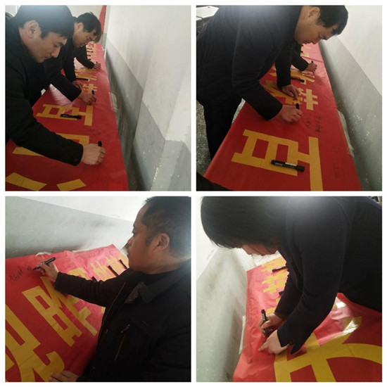 會議最后,與會領(lǐng)導(dǎo)與全體師生在宣誓條幅上簽下自己的名字。本次誓師大會點燃了全體九年級師生的備考熱情,激發(fā)了同學們備考的信心,鼓舞了大家的中考斗志。