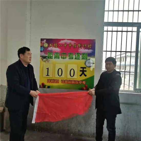 大會在雄壯的國歌聲中拉開帷幕。孟獻峰與田振為中考倒計時牌揭幕。隨后,中心校拿出兩千元現(xiàn)金,對該校一??荚囍腥〉脙?yōu)異成績的同學進行表彰。