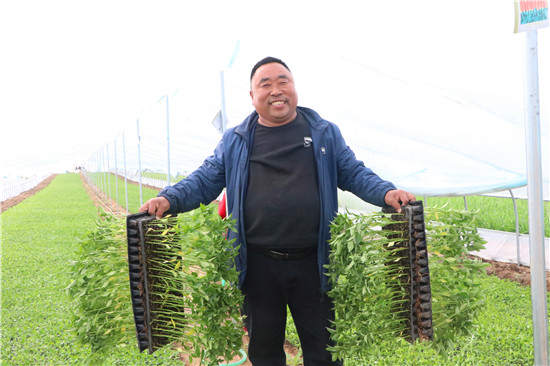 正在育苗的村民楊大姐告訴記者,她一大早就開始工作了,日常是澆水施肥,今天把大棚外的空地播撒有機肥,一天上午、下午兩場,每天可以掙60元錢,一個月1000多呢,比以前在家掐辮子掙得多。
