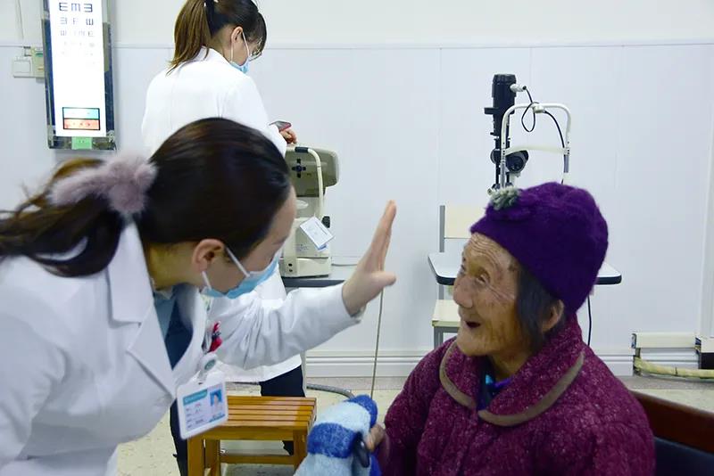 徐君副主任為老人滴過眼藥,老人說:“這會(huì)兒看得更清了!”隨后指著身邊的人,說誰誰穿的什么顏色的衣服,還激動(dòng)地拉著現(xiàn)場每位醫(yī)生的手表示感謝:“剛來時(shí)就聽著你們說話親熱好聽,今兒個(gè)總算看見你們長啥樣了!我原想著這一瞎到死了,沒想到還能再看見啥。”