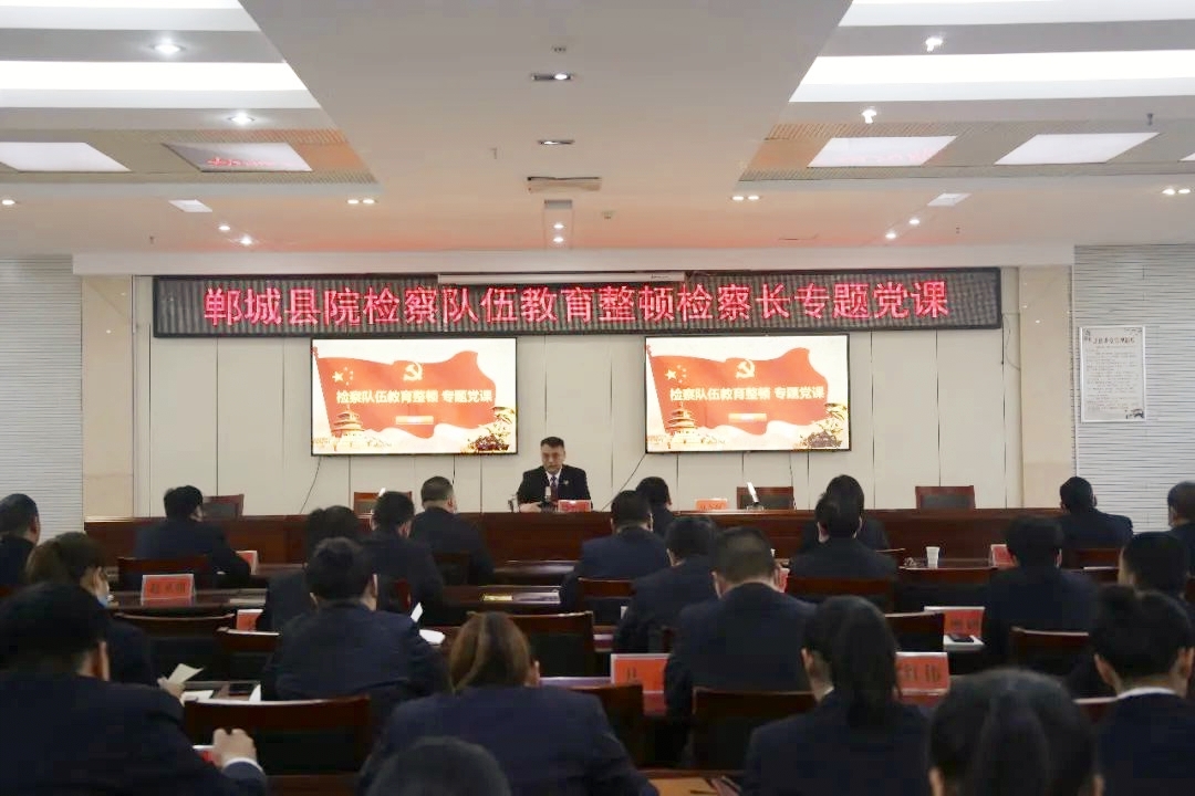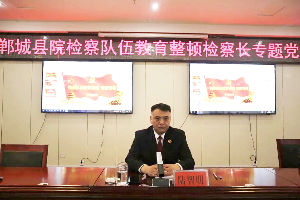 3月19日下午,鄲城縣人民檢察院黨組書記、代檢察長陸智明按照縣院檢察隊伍教育整頓方案安排,結(jié)合檢察教育整頓學(xué)習(xí)教育階段“三項教育”和黨史學(xué)習(xí)教育工作,為全院全體干警上了一堂生動而深刻的主題黨課。