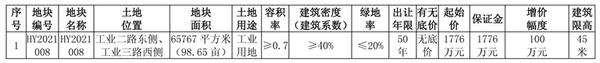 拍賣報價時間為:HY2021008地塊: 2021年4月14日10時。