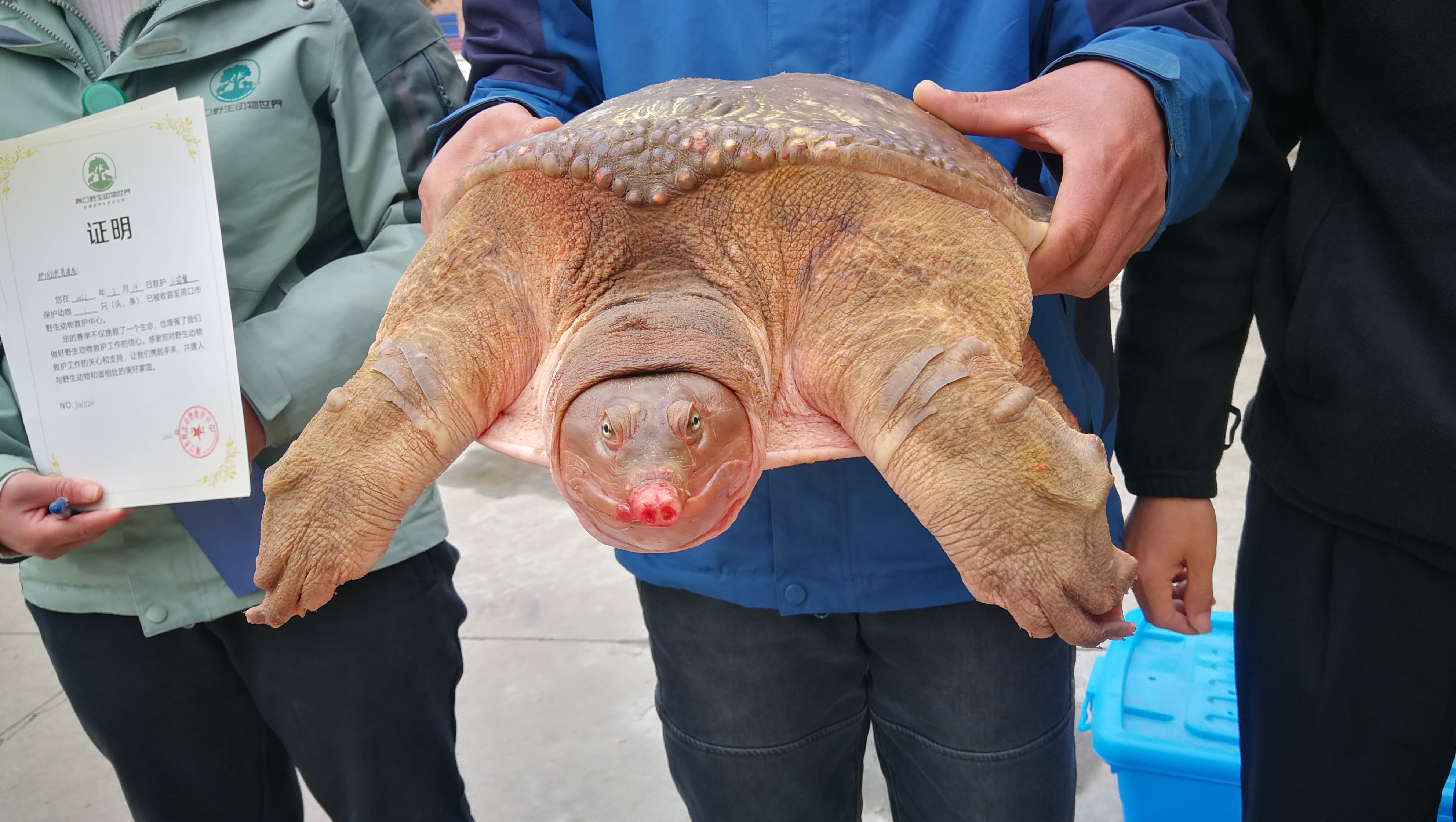 近日,鄲城縣自然資源局接到縣城市管理局公園管理辦公室工作人員救助電話,稱在人民公園岸邊又發(fā)現(xiàn)一只“大老鱉”。接到救助電話后,該局領(lǐng)導(dǎo)立即指派野生動(dòng)植物保護(hù)和自然保護(hù)地管理股工作人員前往現(xiàn)場救助。經(jīng)過勘察,這只“大老鱉”與3月9日救助的那只山瑞鱉一樣,屬國家二級(jí)保護(hù)動(dòng)物,長度達(dá)到70厘米,重量超過30斤,頭部和腳部受傷嚴(yán)重。經(jīng)過簡單消毒處理后,這只山瑞鱉被送往周口野生動(dòng)物救助中心進(jìn)行進(jìn)一步的救治。