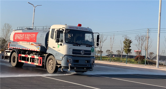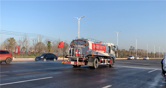 3月22日上午,記者在商水縣溵川大道東段拍到一段灑水車作業(yè)的畫面,畫面里灑水車勻速行駛著,當(dāng)灑水車走近,聽到灑水車上傳出《歌唱祖國(guó)》的曲子。當(dāng)灑水車路過溵川大道與八一大道交叉口處時(shí),記者看到等紅燈的市民跟著《歌唱祖國(guó)》的曲子唱了起來:“五星紅旗迎風(fēng)飄揚(yáng),勝利歌聲多么嘹亮……”
