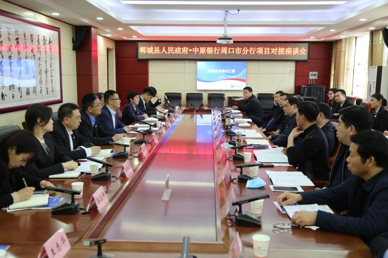 3月24日下午,中原銀行周口分行與鄲城縣人民政府成功召開項目洽談對接交流會。中原銀行周口分行行長周朝陽,行領導付軍偉、李巍、丁瑞及相關部門負責人,鄲城縣人民政府縣長李全林,縣委常委、常務副縣長胡友濤及有關局委負責人出席座談會。
