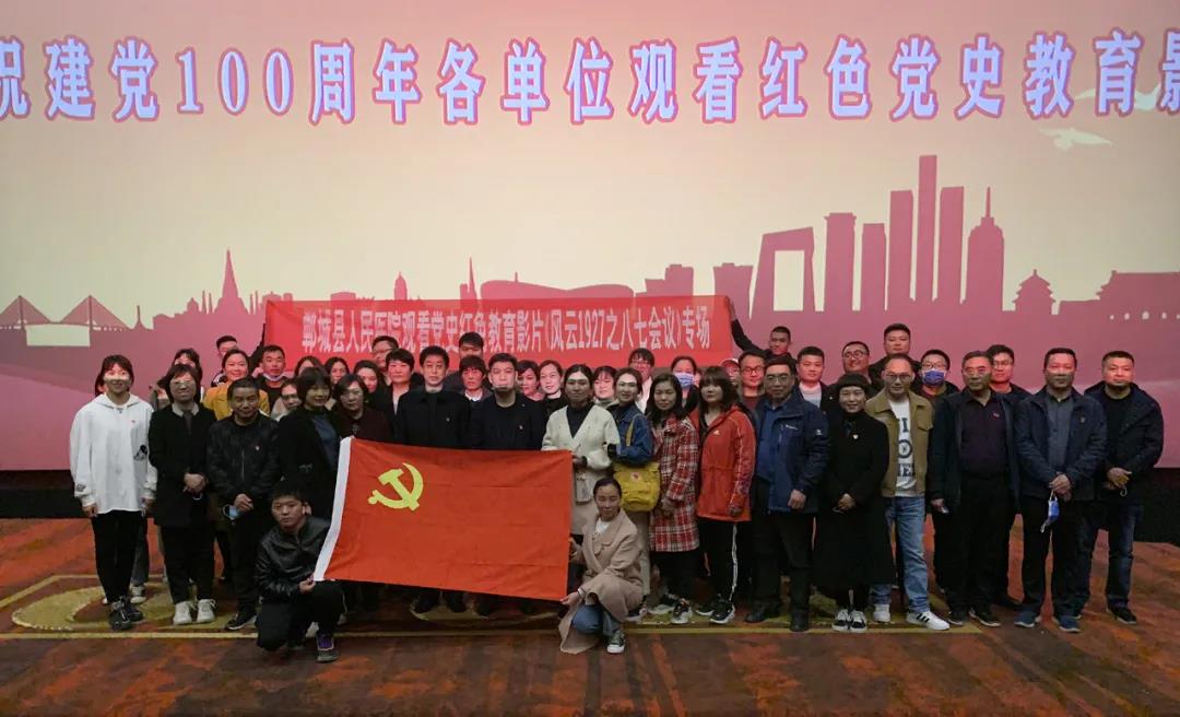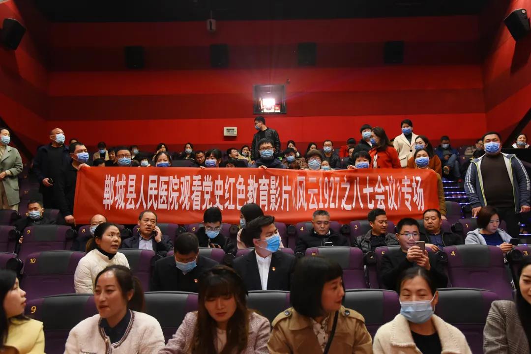 為慶祝中國共產(chǎn)黨成立100周年,深入貫徹落實習(xí)近平新時代中國特色社會主義思想,深入學(xué)習(xí)習(xí)近平總書記關(guān)于“用黨的歷史教育黨員、教育干部、教育群眾尤其是教育青少年”的重要指示要求,3月26日下午,鄲城縣人民醫(yī)院黨委組織全院100余名共產(chǎn)黨員在鄲城縣奧斯卡影城集中觀看黨史軍史紅色教育影片《風(fēng)云1927之八七會議》。