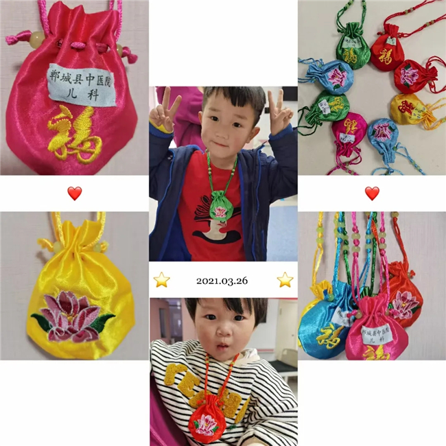 春季氣候逐漸轉(zhuǎn)暖,加之溫差大易致人體抵抗力下降,很容易誘發(fā)小兒感冒。鄲城縣中醫(yī)院兒科有個“錦囊妙計”,那就是佩戴中藥香囊。佩戴中藥香囊防病治病,在我國有悠久的歷史,春秋戰(zhàn)國時期就有佩戴芳香性植物以預(yù)防疫癘或治療疾病的記載,用于避不祥、殺蟲毒。