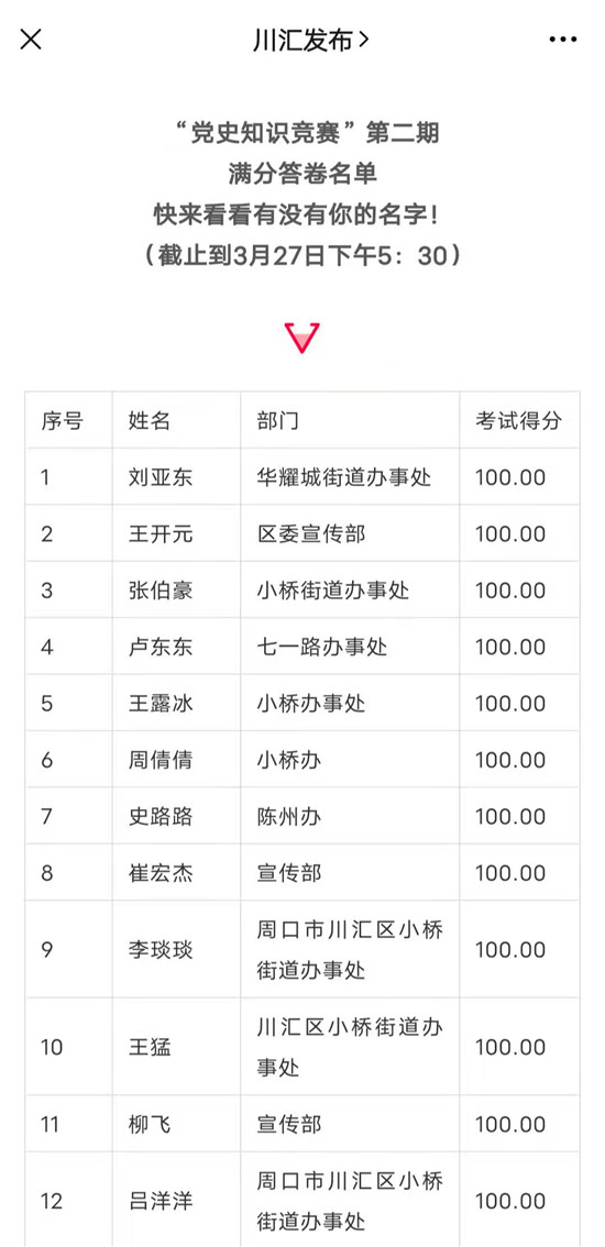 在黨史學(xué)習(xí)教育如火如荼推進(jìn)過程中,周口市川匯區(qū)委宣傳部利用“川匯發(fā)布”微信公眾號等新媒體,推出“紅色三川地 永遠(yuǎn)跟黨走”線上黨史知識競賽活動,引導(dǎo)全區(qū)各部門各單位黨員干部及群眾積極參與,在“學(xué)史明理、學(xué)史增信、學(xué)史崇德、學(xué)史力行”中感悟初心使命、汲取奮進(jìn)力量,在“學(xué)黨史、悟思想、辦實(shí)事、開新局”中發(fā)揚(yáng)奮斗精神、創(chuàng)造新的業(yè)績。