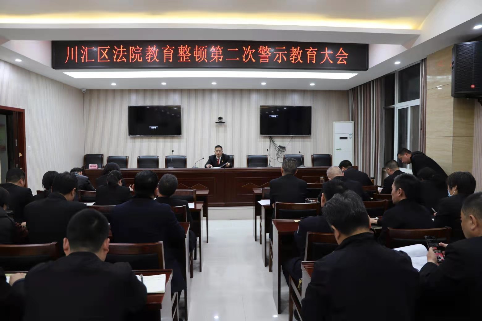 為扎實開展隊伍教育整頓學(xué)習(xí)教育中的警示教育,讓警示教育常態(tài)化,3月29日,川匯區(qū)人民法院召開第二次警示教育大會,會前,干警觀看了廉政教育紀(jì)錄片,區(qū)法院黨組副書記、常務(wù)副院長翟海松代結(jié)合政法系統(tǒng)中的違法違紀(jì)案例為干警作了廉政教育和警示教育報告。