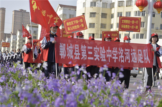 一路上,同學(xué)們?cè)诶蠋熀徒痪淖o(hù)送下,喊著響亮的口號(hào)走在洺河岸邊,欣賞著洺河美景?!捌綍r(shí)沒(méi)有靜心觀看洺河,真沒(méi)有想到這么美,我為老家鄲城而自豪!”學(xué)生們特別興奮。