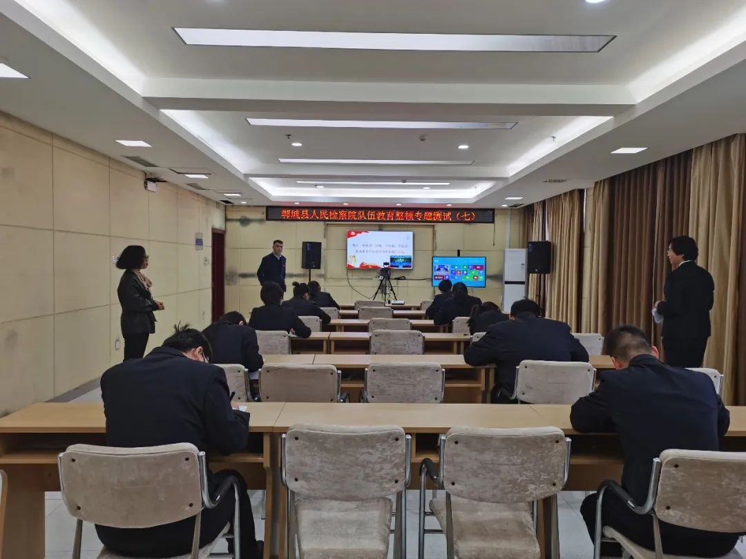 駐點指導組認真查看鄲城縣院教育整頓工作資料,了解縣院宣傳氛圍營造情況,抽查干警學習筆記,組織教育整頓應(yīng)知應(yīng)會知識測試。
