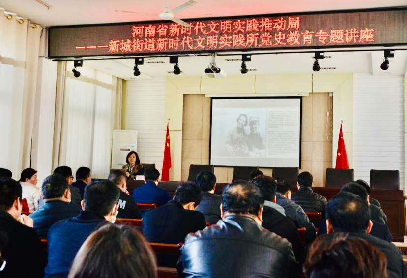 舉辦專題講座推進(jìn)學(xué)。新城街道黨工委邀請市委黨校黨史黨建研究專家為全體黨員干部職工上黨史課。通過回顧黨史、對照現(xiàn)實(shí)、反思自身,進(jìn)一步增強(qiáng)“四個意識”,堅(jiān)定“四個自信”,做到“兩個維護(hù)”,時時不忘身負(fù)的責(zé)任和使命,精益求精提高業(yè)務(wù)水平,踏實(shí)肯干爭當(dāng)崗位先鋒,真正做到理想銘記、信念在心,宗旨不忘、本色永存。