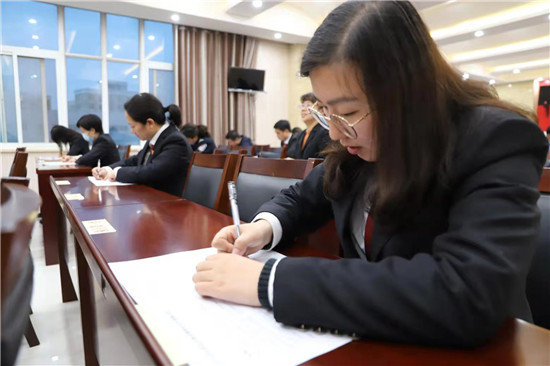 競(jìng)賽現(xiàn)場(chǎng),大家勤于思考、冷靜答卷,充分展現(xiàn)了法院干警的知識(shí)水平和教育整頓學(xué)習(xí)教育效果。