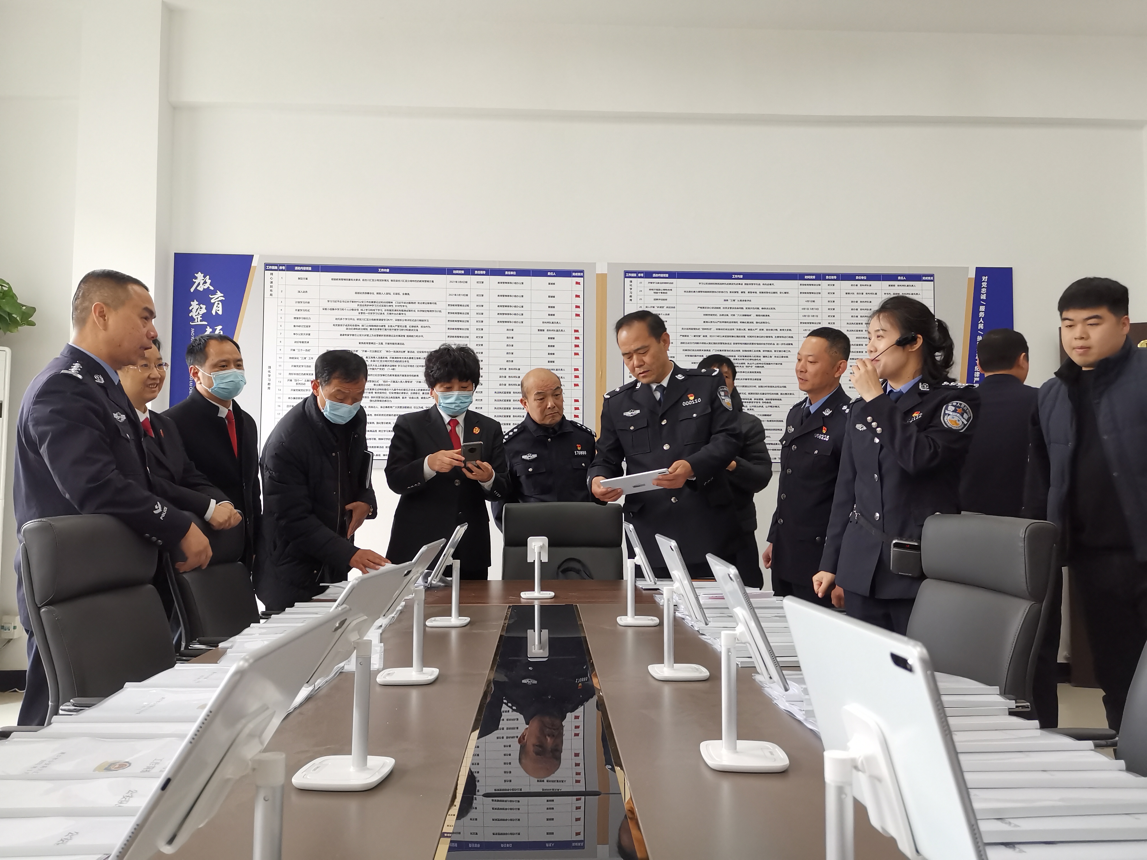 為學(xué)習(xí)借鑒教育整頓試點(diǎn)單位的先進(jìn)經(jīng)驗(yàn)和創(chuàng)新做法,進(jìn)一步提升我市教育整頓工作質(zhì)效,4月1日上午,在河南省政法隊(duì)伍教育整頓第十六駐點(diǎn)指導(dǎo)組安排下,川匯區(qū)、項(xiàng)城、西華、商水、扶溝五縣市(區(qū))的政法委書記、法、檢、公、司四長深入到周口市公安局川匯區(qū)分局,通過聽、談、看等方式,對川匯區(qū)公安分局教育整頓工作開展情況、宣傳氛圍、學(xué)習(xí)轉(zhuǎn)化、為群眾辦實(shí)事、資料臺賬等方面進(jìn)行學(xué)習(xí)交流,有效推動教育整頓工作走深走實(shí) 。