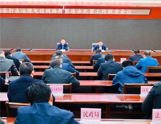 日前,鄲城縣召開打擊治理電信網(wǎng)絡(luò)新型違法犯罪工作聯(lián)席會(huì)議??h委常委、政法委書記謝超,副縣長(zhǎng)、縣公安局長(zhǎng)陳鳳祥出席會(huì)議。