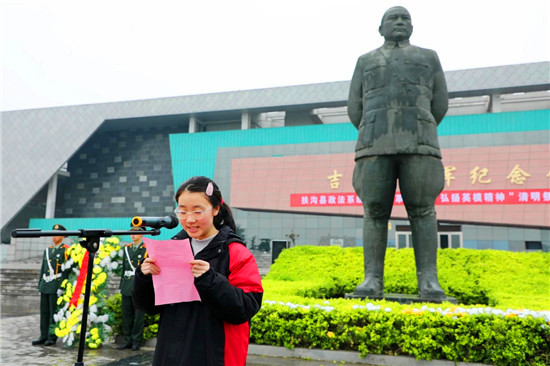 4月2日,扶溝高中校團(tuán)委組織部分師生,懷著對烈士無限崇敬的心情,來到吉鴻昌將軍紀(jì)念館,祭掃吉鴻昌將軍銅像,緬懷吉鴻昌將軍。祭掃活動由高一團(tuán)支部負(fù)責(zé)人吳肖老師主持。