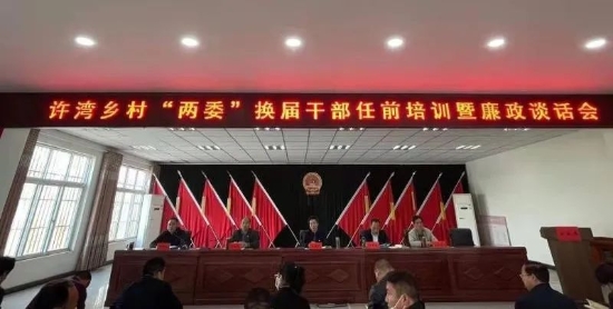 日前,周口市城鄉(xiāng)一體化示范區(qū)許灣鄉(xiāng)召開村“兩委”換屆干部任前培訓暨集體廉政談話會,宣布新一屆行政村“兩委”班子成員。連任、新任村黨支部書記在會上作表態(tài)發(fā)言。鄉(xiāng)黨委書記張宏志出席會議并提出要求。會議由鄉(xiāng)長袁澤坤主持。
