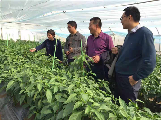 在服務(wù)基層期間,楊路明爭(zhēng)當(dāng)“紅娘”,把扶溝蔬菜產(chǎn)業(yè)的現(xiàn)狀和發(fā)展機(jī)遇向?qū)W校領(lǐng)導(dǎo)進(jìn)行匯報(bào),積極在派出單位和服務(wù)單位間架設(shè)橋梁紐帶,促進(jìn)基層單位與高校、企業(yè)建立長(zhǎng)期交流合作機(jī)制。3月24日,河南農(nóng)大園藝學(xué)院書(shū)記楊喜洲、院長(zhǎng)孫守茹、副院長(zhǎng)陳廣輝一行在扶溝縣農(nóng)業(yè)農(nóng)村局局長(zhǎng)朱軍峰和縣委組織部副部長(zhǎng)余黎明的陪同下先后到河南農(nóng)大蔬菜研究院、柴崗鄉(xiāng)梅橋蔬菜園區(qū)、德立爾蔬菜園區(qū)進(jìn)行實(shí)地調(diào)研。楊喜洲在調(diào)研中指導(dǎo)種植戶要科學(xué)施肥、選擇優(yōu)良品種壯苗、提升秧苗定植的技巧,并注意定植之后的水肥管理。