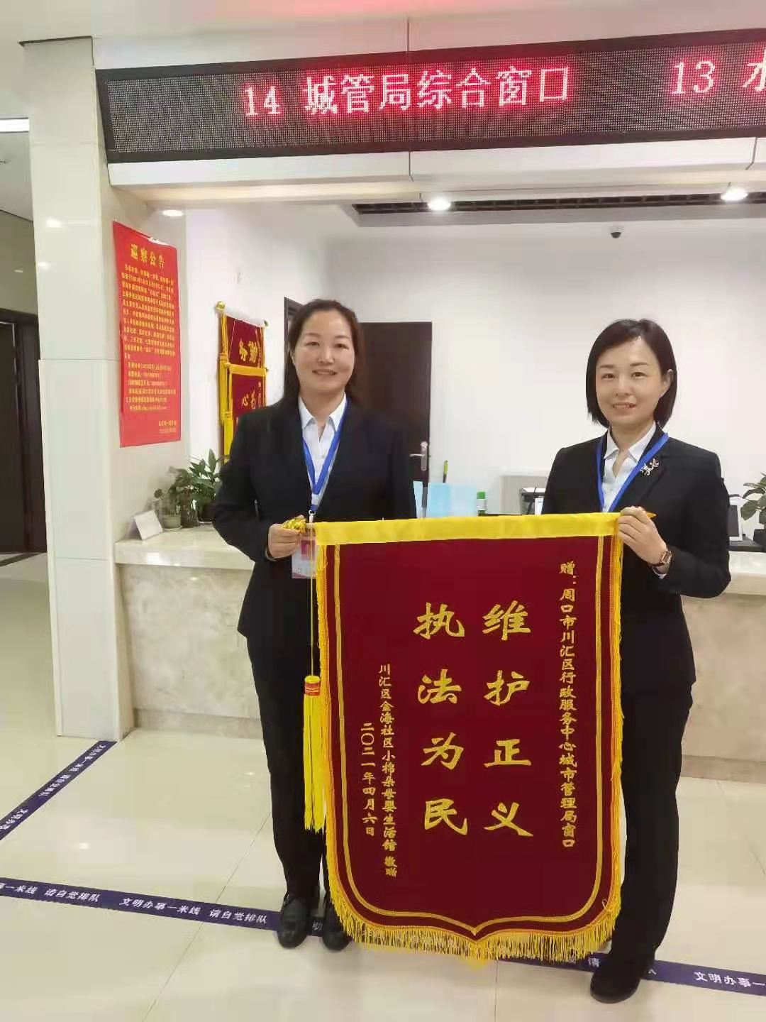 4月6日,周口市行政服務(wù)中心川匯區(qū)城市管理局服務(wù)窗口,張先生激動地將一面錦旗交到工作人員手中,感謝川匯區(qū)城市管理局在門頭牌匾審批過程中給予的熱情幫助和指導(dǎo)。