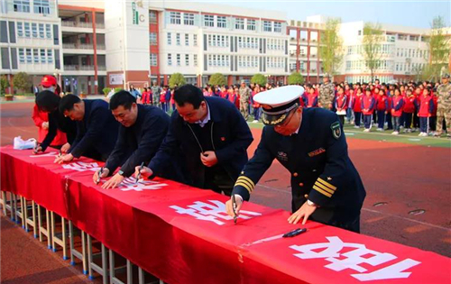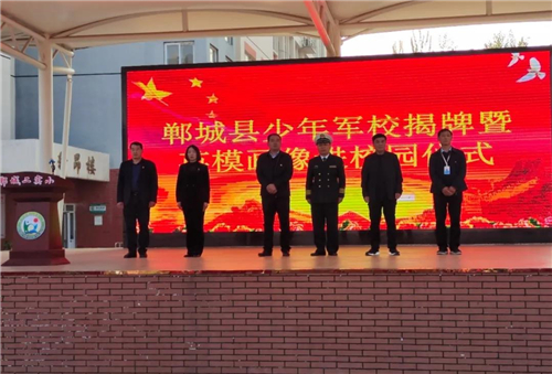 4月8日下午,鄲城縣少年軍校揭牌暨全軍英模畫像進(jìn)校園儀式在縣第二實(shí)驗(yàn)小學(xué)舉行,縣委常委、縣政府常務(wù)副縣長(zhǎng)胡友濤,縣委常委、縣人武部政委金仁旺,縣退役軍人事務(wù)局黨組書記、局長(zhǎng)褚章民,共青團(tuán)縣委副書記、縣少工委書記黃麗莉參加儀式??h教體局黨組書記、局長(zhǎng)羅明黨主持。