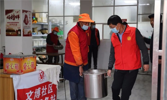 4月9日凌晨,項(xiàng)城市總工會(huì)志愿者拉著大米、面粉、食用油,早早來到愛心粥屋。物品卸好后,志愿者開始洗菜、切菜、熬粥,7點(diǎn)左右,飯菜做好,100余名環(huán)衛(wèi)工、孤寡老人等像往常一樣陸續(xù)趕來,整整齊齊排隊(duì)等候。隨后,志愿者為他們盛粥、端菜、送饃。