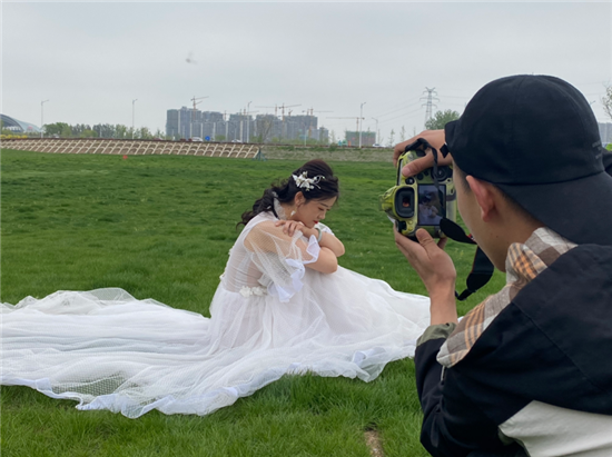 “太適合拍照了,在這拍出的照片很有高級(jí)感,隨手一拍就很好看。”攝影師張建闊告訴記者,前兩天路過這里,看到這里的草長勢非常好,非常適合拍照,就帶著團(tuán)隊(duì)過來了。