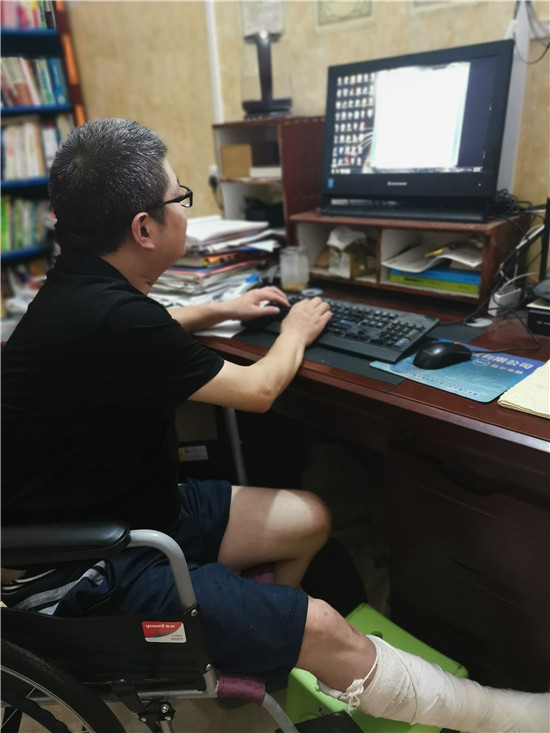 命運(yùn)似乎在捉弄他。王洪振頸椎剛有好轉(zhuǎn),2020年6月,在一次送材料的路上,他不慎造成小腿骨折,被迫住院治療。“根據(jù)醫(yī)生安排,我必須回家休養(yǎng)??墒俏野l(fā)現(xiàn)拄著雙拐能動(dòng),而且我的雙手沒(méi)有問(wèn)題,完全不影響電腦打字。”王洪振說(shuō)。