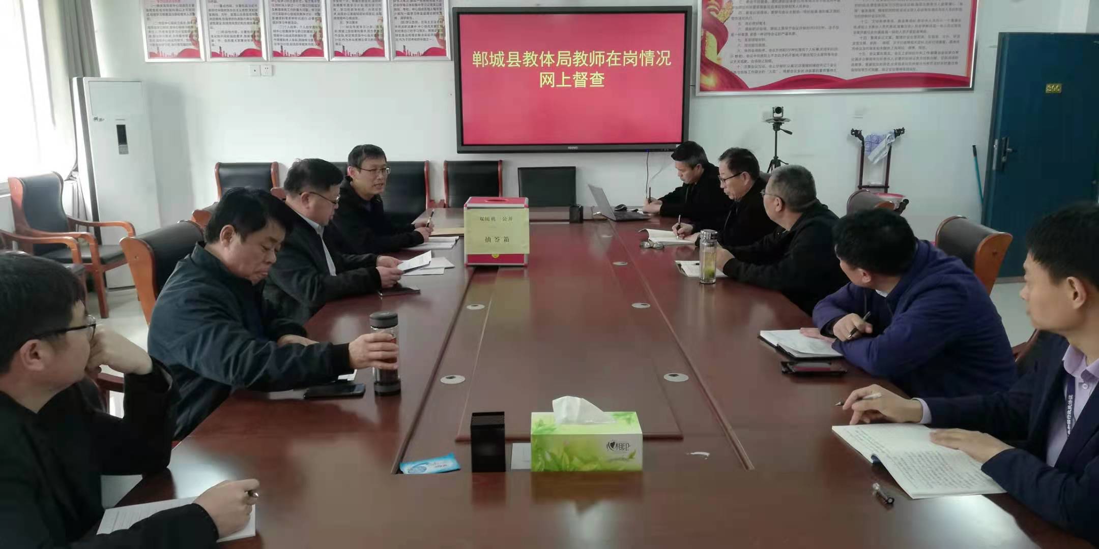 抽查時,紀檢組、督導室、辦公室、人事股、目標辦等相關股室負責人和工作人員全部到崗到位,從抽簽箱中隨機抽出三個球號組成一組數字,然后從《隨機抽查檢查對象名錄庫》中確定被督查學校。網上督查人員接通被督查學校負責人或者教職工“企業(yè)微信”,通過視頻形式督查教師在崗信息公示情況、教師到崗情況、平時學校(中心校)對教師管理教育情況等,并同步與人事(師訓)教職工(特崗教師)信息系統(tǒng)比對。出差、請假等須當場提供相關佐證材料。對疑似存在問題的,紀檢、人事部門當即啟動線下復核程序。