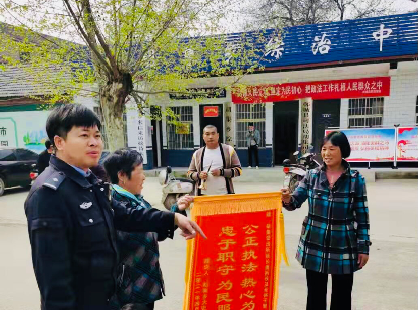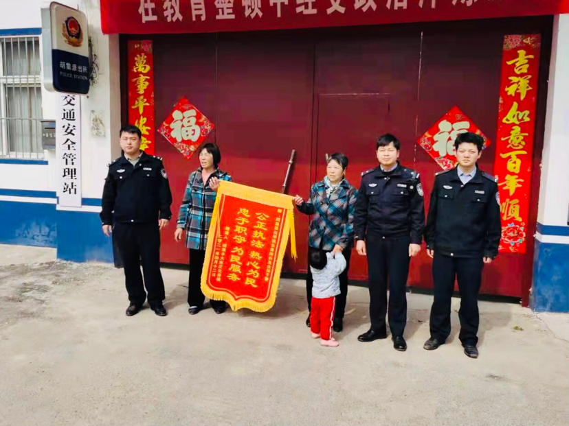 4月12日上午,鄲城縣公安局胡集派出所門前鑼鼓喧天,胡集鄉(xiāng)大史行政村大史自然村史某某及其家人向辦案民警趙滿意等人送來“公正執(zhí)法、熱心為民、忠于職守、為民服務(wù)”錦旗,表達(dá)感謝之情。