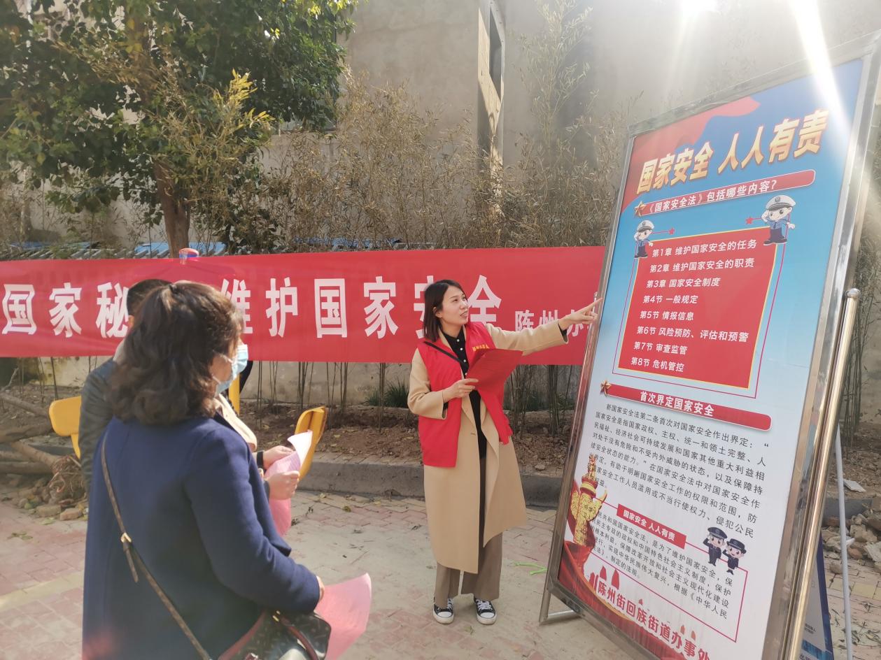 今年4月15日是第6個全民國家安全教育日。為提升人民群眾國家安全意識,筑牢國家安全人民防線,近日,川匯區(qū)陳州街回族街道辦事處組織開展了國家安全宣傳教育進(jìn)小區(qū)活動。