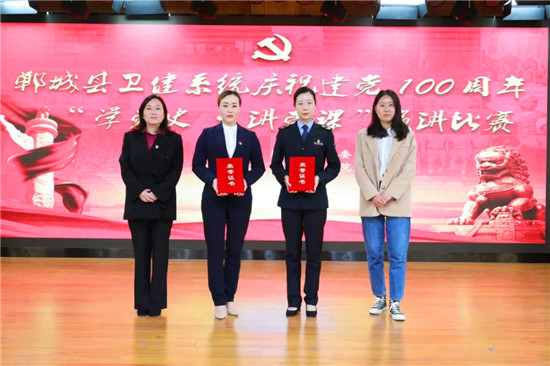 為切實(shí)推動(dòng)衛(wèi)健系統(tǒng)黨史學(xué)習(xí)教育,強(qiáng)化黨員干部隊(duì)伍建設(shè),4月16日,鄲城縣衛(wèi)健委組織開(kāi)展衛(wèi)健系統(tǒng)慶祝建黨100周年“學(xué)黨史、講黨課”演講比賽??h衛(wèi)生健康委黨組書記、主任付登霄參加活動(dòng)并致辭。