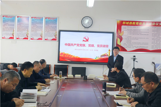 “我志愿加入中國共產(chǎn)黨,擁護黨的綱領(lǐng),遵守黨的章程,履行黨員義務(wù),執(zhí)行黨的決定,嚴守黨的紀律……”4月16日,鄲城縣教體局三樓黨組會議室內(nèi),機關(guān)第一支部的黨員們高舉右手,重溫入黨誓詞,高亢的聲音回響在會議室內(nèi)。