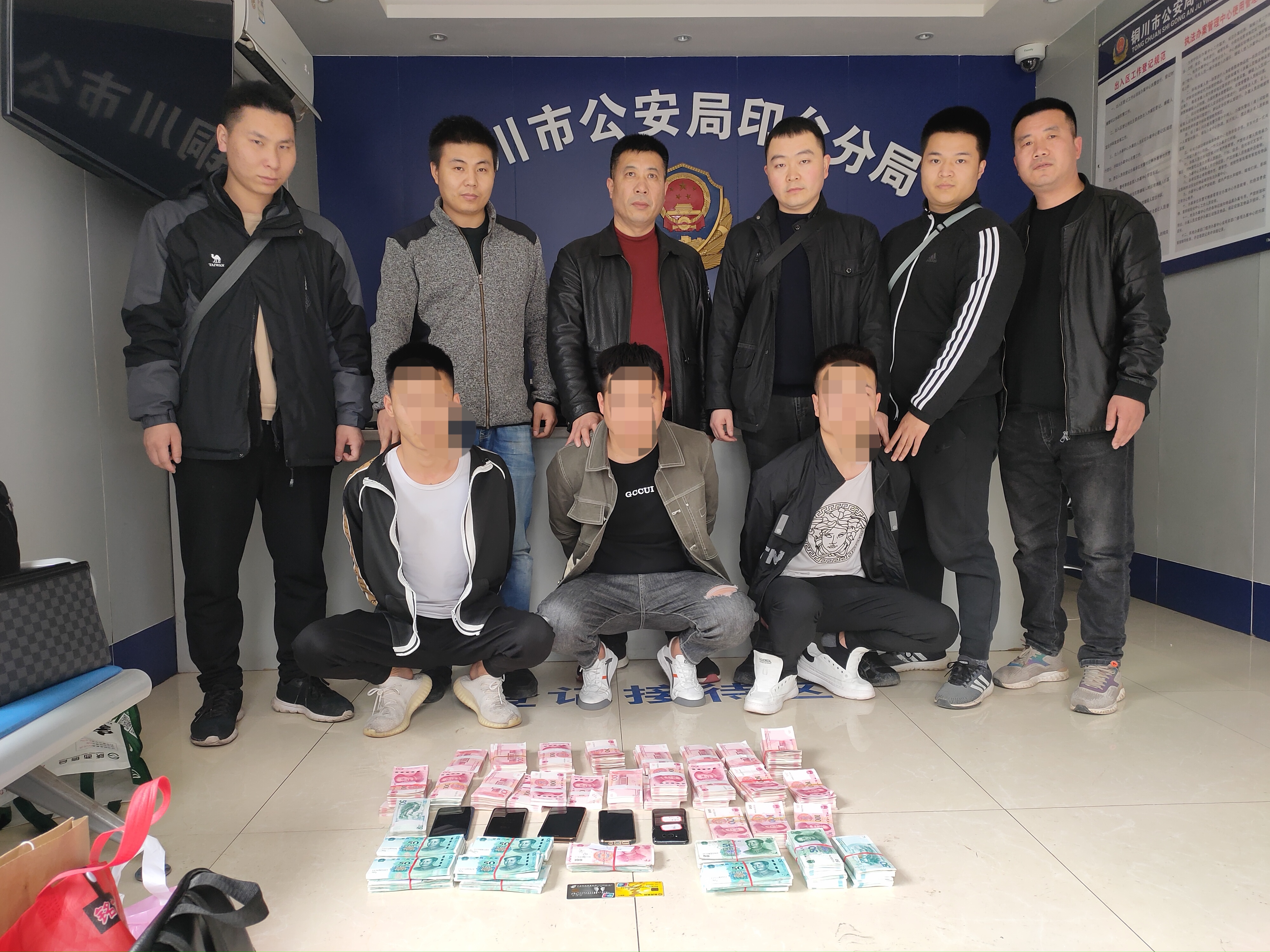 專案組民警廢寢忘食加班加點(diǎn),每天睜開雙眼,就立即開展偵查工作上。功夫不負(fù)有心人,民警通過50余小時(shí)的分析研判,發(fā)現(xiàn)嫌疑人作案窩點(diǎn)在柬埔寨,同時(shí)民警通過資金流向分析出陜西省銅川市有一取現(xiàn)團(tuán)伙。2021年4月1日,在川匯區(qū)分局黨委的統(tǒng)一指揮下,專案組民警劉保、于長周等人驅(qū)車前往陜西省銅川市開展抓捕工作。 夜幕降臨,經(jīng)過近9個(gè)小時(shí)的奔波,專案組民警終于趕到了陜西省銅川市。為了防止嫌疑人轉(zhuǎn)移涉案資金,他們顧不上休息,連夜開展工作,摸排犯罪窩點(diǎn)。4月2日,在近24小時(shí)的不眠不休后,專案組民警成功將銅川市的3名犯罪嫌疑人抓獲歸案。嫌疑人到案不是目的,更重要的是挽回?fù)p失,民警劉富良等人駕車在銅川各個(gè)縣區(qū)往返四五次,不放過一條線索,連續(xù)工作,追回贓款47.3萬元。