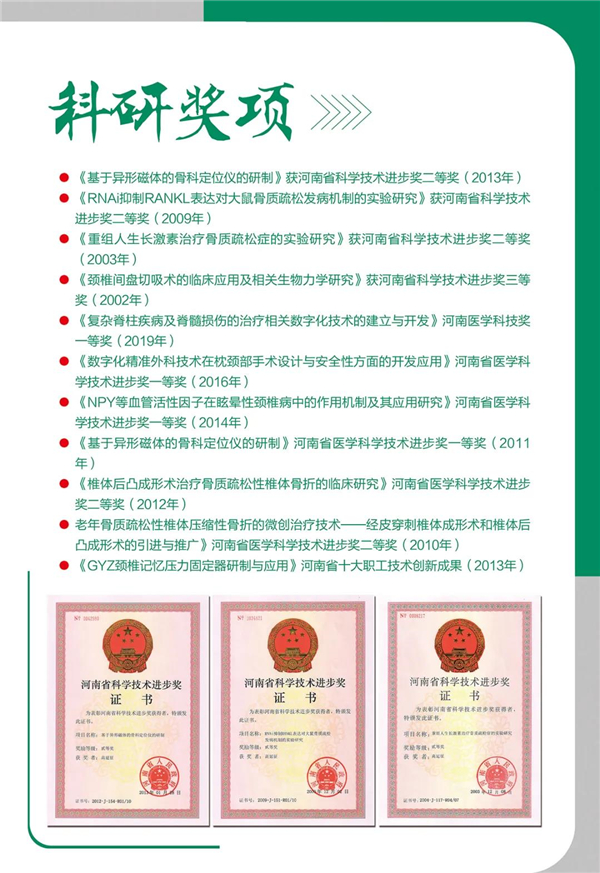 從事骨科臨床與科研工作30余年,多次赴國外學習深造和學術交流。在脊柱外科、關節(jié)外科、脊柱畸形矯形等方面積累了豐富的臨床經(jīng)驗。尤其擅長頸椎病的診斷與治療,在全國首例開展了頸椎非融合技術——動態(tài)固定技術(DCI),為頸椎病的非融合治療開辟了新途徑。近年來特別致力于枕頸部畸形,寰樞椎骨折、脫位等方面的臨床研究和總結(jié)。相繼開展了具有代表性的脊柱外科高難度手術:頸人工椎間盤置換術,腰椎非融合技術及枕頸部畸形、腫瘤、環(huán)樞關節(jié)不穩(wěn)和脫位,顱底凹陷癥的手術治療,在國內(nèi)較早開展了脊椎腫瘤的標志性治療技術——脊柱腫瘤的后路全椎體切除術。