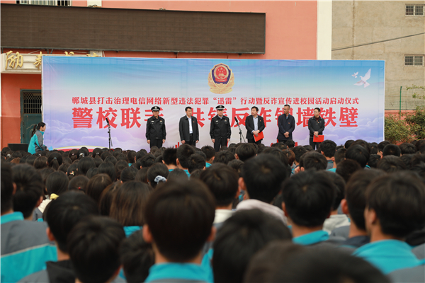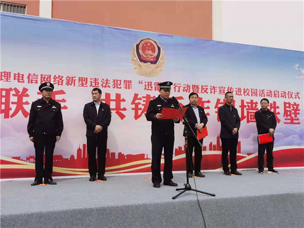 4月18日上午,鄲城縣打擊治理電信網(wǎng)絡新型違法犯罪“迅雷”行動暨反詐宣傳進校園活動儀式在縣三高啟動。縣政府副縣長、公安局長陳鳳祥,縣政府辦公室主任賈培民,縣教體局黨組書記、局長羅明黨等出席啟動儀式,縣打擊治理電信網(wǎng)絡新型違法犯罪工作各成員單位、縣公安局、縣三高分別組成代表隊2200余人參加啟動儀式,儀式由賈培民主持。