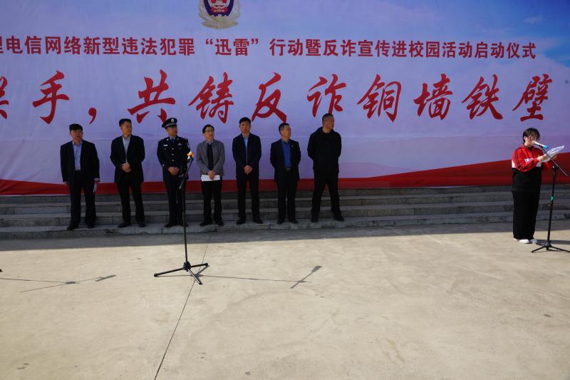 4月18日上午,項(xiàng)城市打擊治理電信網(wǎng)絡(luò)新型違法犯罪“迅雷”行動(dòng)暨反詐宣傳進(jìn)校園活動(dòng)啟動(dòng)儀式在項(xiàng)城體育館舉行。市委常委、政法委書(shū)記段曉,市人大常委會(huì)副主任張春志,市政府副市長(zhǎng)、公安局長(zhǎng)萬(wàn)東偉,市政協(xié)副主席王養(yǎng)嶺及市委政法委副書(shū)記薛峰、市教體局長(zhǎng)陳敏等出席活動(dòng)。段曉、萬(wàn)東偉分別講話。儀式由市政府辦公室副主任李金方主持。