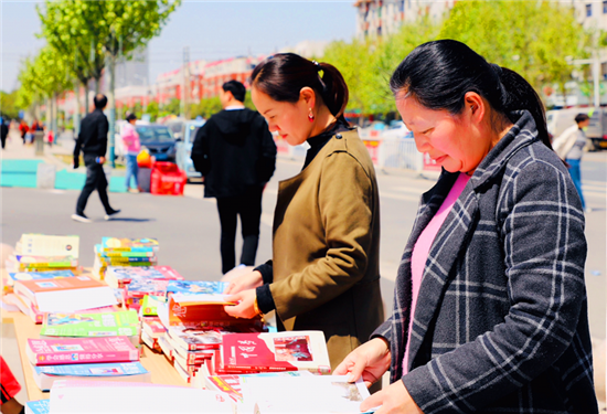 項城市圖書館的工作人員把準備的書刊以及圖書館的宣傳書簽擺放在長桌上,這批圖書內容全面,涵蓋紅色經典書籍、故事書、科普讀物以及少兒期刊類讀物等,充分滿足了廣大市民“求智、求知、求樂”的需求。