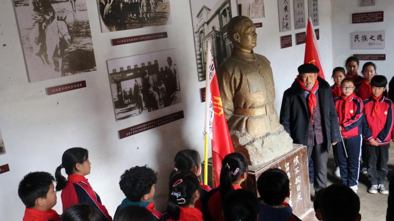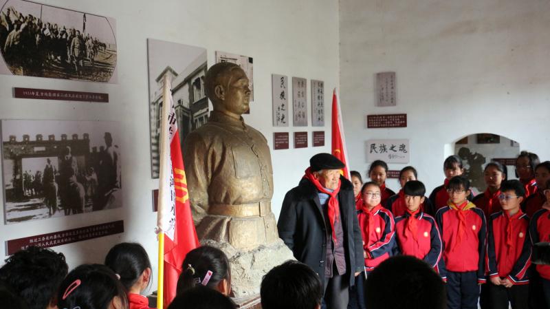 在全國上下掀起黨史學習教育熱潮之際,近日,來自吉鴻昌小學六(1)班的30名孩子,在學校少先隊輔導員的帶領下來到呂潭學校舊址,開展主題為“弘揚鴻昌精神、傳承紅色基因”的主題隊會活動,參觀了吉鴻昌學校和吉鴻昌故居,循著英雄的足跡,親身感受吉鴻昌精神的內(nèi)涵,接受一場紅色的精神洗禮。期間,在吉鴻昌將軍塑像前,何國志老人生動地講解了吉鴻昌將軍親手斃堂侄、創(chuàng)辦吉鴻昌學校、首次向中國人介紹電視等身前事跡,在場的孩子感動得熱淚盈眶。 “聽了何爺爺?shù)闹v述,我被吉鴻昌將軍的事跡深深感動,長大后也要成為一名像他一樣的人!”張晨曦同學說。
