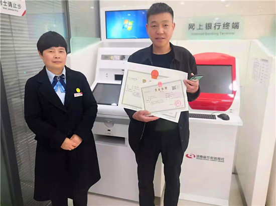 當(dāng)日,邵先生在鄲城財(cái)政局樓下鄲城信用聯(lián)社大廳商事登記綜合業(yè)務(wù)自助一體機(jī)上插入身份證,機(jī)器面部自動(dòng)識(shí)別后,隨著一體機(jī)的一聲“請即時(shí)取走您的營業(yè)執(zhí)照”提示,營業(yè)執(zhí)照正副本當(dāng)即打印出來了。