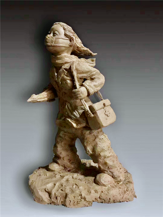 張振福創(chuàng)作的泥塑作品《白衣天使》入選云上展,并在社會(huì)上引起強(qiáng)烈反響?!栋滓绿焓埂繁憩F(xiàn)的是面對(duì)生死考驗(yàn),“最美醫(yī)護(hù)工作者”在萬家團(tuán)圓的時(shí)候,毅然決然馳援武漢的大愛風(fēng)采。張振福以大匠之法,用黃河泥刻畫出了與時(shí)間賽跑、與病毒決戰(zhàn)的白衣戰(zhàn)士,用泥塑表達(dá)對(duì)抗疫英雄的敬仰,展示了廣大醫(yī)護(hù)人員的醫(yī)者仁心、無私奉獻(xiàn)和中華兒女眾志成城、不畏艱險(xiǎn)的勵(lì)志精神。