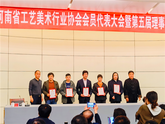 在會(huì)上,河南省工藝美術(shù)行業(yè)協(xié)會(huì)會(huì)長(zhǎng)孔紅生作了2020年河南省工藝美術(shù)行業(yè)協(xié)會(huì)工作報(bào)告,河南省工藝美術(shù)行業(yè)協(xié)會(huì)名譽(yù)會(huì)長(zhǎng)張玉骉宣讀了張振福泥塑、王華平麥稈畫、游敏澄泥硯等藝術(shù)家作品入選抗擊新冠病毒肺炎疫情主題藝術(shù)作品云上展的表彰決定。