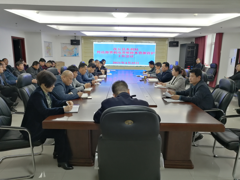 4月25日,沈丘縣水利局召開機電井維修水資源管護專題工作會議,局機關(guān)全體人員、局屬相關(guān)二級機構(gòu)人員參加會議。