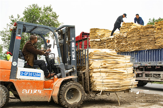 將樹木初級加工,晾干后,賣到外地制作各種板材,成為近年來淮陽區(qū)新站、王店、劉振屯等地農(nóng)民摸索出的一條致富路。圖為淮陽區(qū)新站鎮(zhèn)一個(gè)木材加工企業(yè)正在將刨好板片裝成外賣。