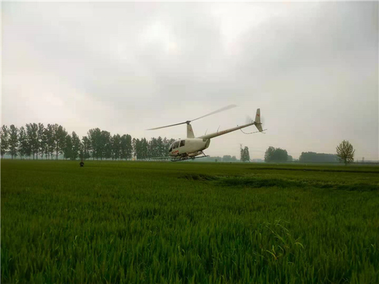 4月26日,一架小型直升機正在對小麥實施噴灑作業(yè)。當前,我市小麥進入抽穗揚花期,也是產(chǎn)量形成的關(guān)鍵時期,更是多種病蟲害的高發(fā)期,扶溝縣練寺鎮(zhèn)與上級農(nóng)業(yè)部門積極聯(lián)系,對全鎮(zhèn)2.9萬畝小麥進行病蟲害防治 ,有效防止病蟲害的發(fā)生。