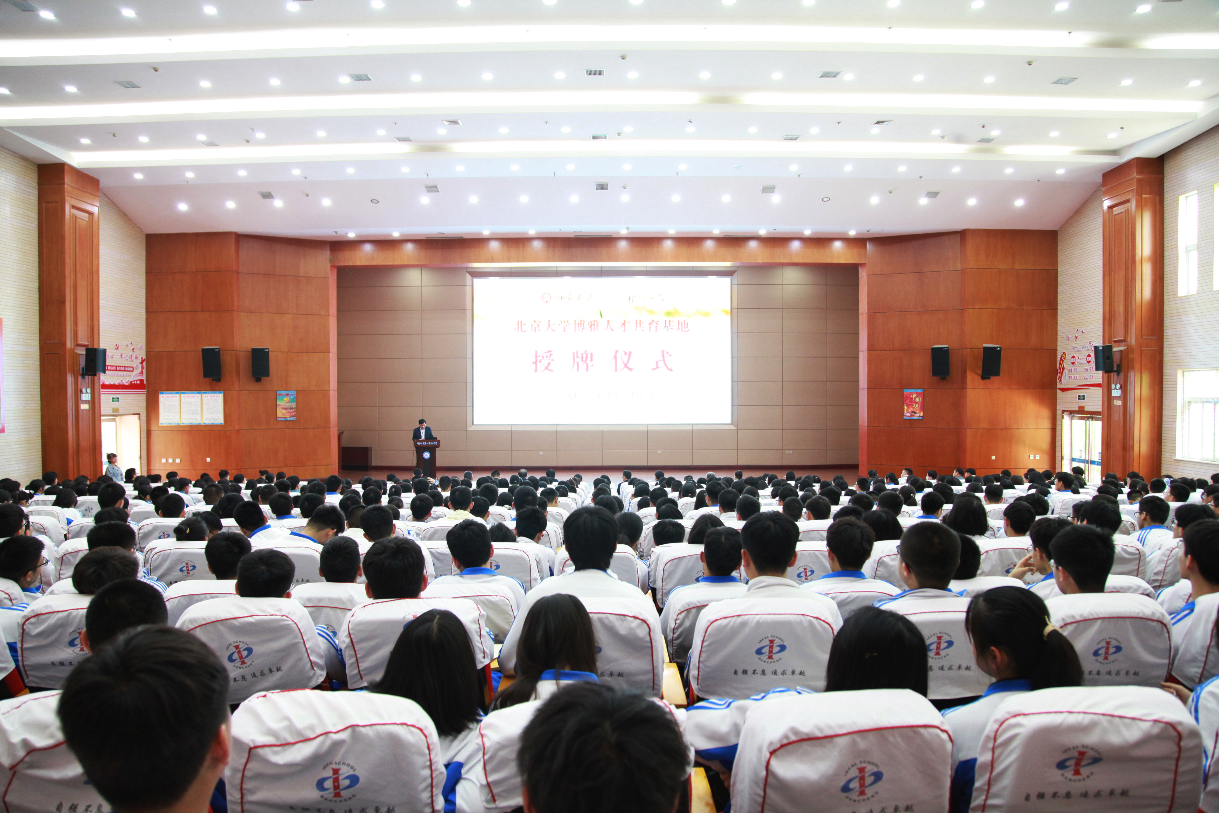 4月27日上午,北京大學(xué)“博雅人才共育基地”授牌儀式在鄲城一高報(bào)告廳舉行,鄲城縣長李全林,北大招生辦副主任林莉,北大河南招生組組長周江,鄲城一高校長劉成章等出席儀式,副縣長張凱主持儀式。