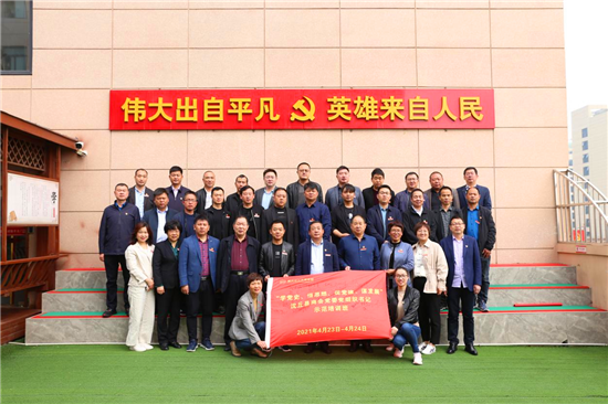 為學(xué)習(xí)圓方黨建先進(jìn)經(jīng)驗(yàn),進(jìn)一步提升沈丘縣基層商會(huì)黨建工作水平,學(xué)黨史、悟思想、促黨建、謀發(fā)展,為建黨一百周年獻(xiàn)禮,4月23日至4月24日,沈丘縣商會(huì)黨委組織各鄉(xiāng)鎮(zhèn)(辦)商會(huì)秘書(shū)長(zhǎng)(黨委副書(shū)記)、異地商會(huì)黨支部書(shū)記、商會(huì)黨委委員等33人赴鄭州市圓方非公有制企業(yè)黨建學(xué)院參觀學(xué)習(xí)。