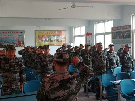 會(huì)議先后宣讀了葉埠口鄉(xiāng)民兵干部任職命令、基干民兵應(yīng)急排編組名單、基干民兵應(yīng)急排表彰決定;民兵應(yīng)急排排長劉永圈同志帶領(lǐng)民兵進(jìn)行了宣誓、新入隊(duì)民兵代表馬軍輝同志發(fā)言。