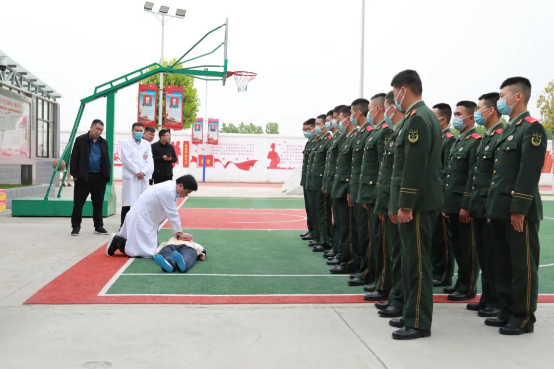 急診科醫(yī)師劉洋現(xiàn)場為官兵們進(jìn)行了心肺復(fù)蘇急救演示,手把手教給官兵如何進(jìn)行急救,武警戰(zhàn)士們在醫(yī)生的指導(dǎo)下,認(rèn)真反復(fù)演練。