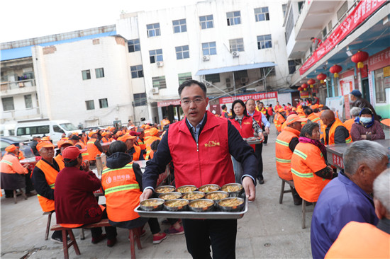 當(dāng)日早上6時(shí),鄧昌鋒與志愿者早早趕到“愛心粥屋”服務(wù)站,一到粥屋便主動(dòng)加入到忙碌的服務(wù)中。鄧昌鋒帶頭給環(huán)衛(wèi)工盛粥、分發(fā)饅頭、端菜,志愿者一個(gè)個(gè)忙得不亦樂乎。待環(huán)衛(wèi)工人用餐完畢,鄧昌鋒與志愿者一起清掃地面、整理桌椅,及時(shí)將碗筷清洗干凈。大家雖然有些勞累,但每個(gè)人的心里都充滿了愉悅感和幸福感?!皼]想到,縣委統(tǒng)戰(zhàn)部給俺送來愛心物資,還請(qǐng)了歌手給我們唱歌,聽著心里暖暖的!”年過六旬的李大嬸吃著飯感謝的話說個(gè)不停。